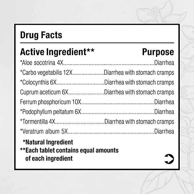 • Gentle relief – 8 active ingredients including Colocynthis, a well known remedy for gently relieving spasms often accompanying diarrhea.†