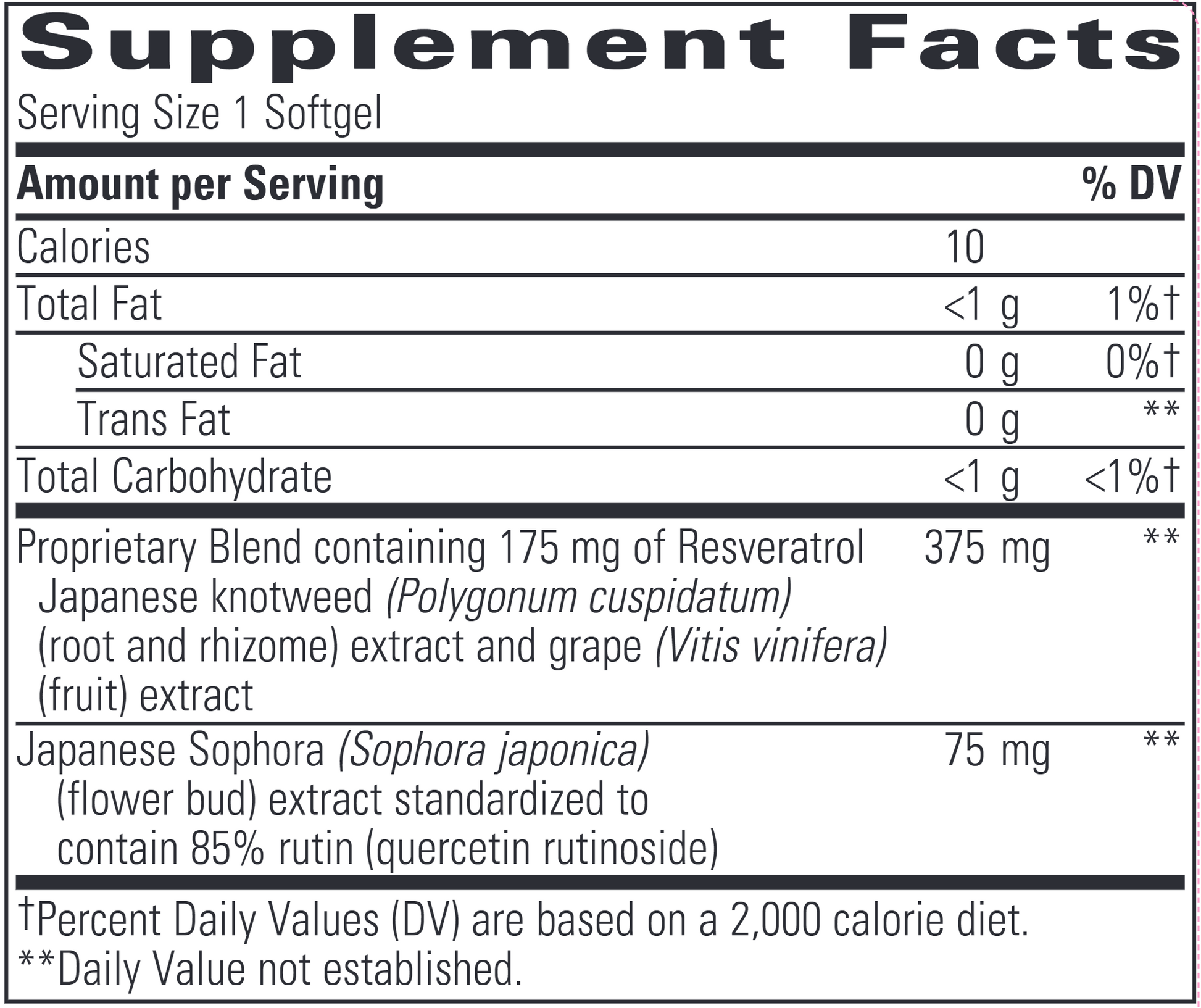 Resveratrol Ultra contains pure trans-resveratrol which supports cardiovascular health.* Resveratrol Ultra also contains rutin (quercetin rutinoside), a bioflavonoid from Japanese sophora (Sophora japonica) flower bud, which is converted to quercetin in the body. Research suggests that the combination of quercetin and resveratrol provides support for the immune system than either compound alone.*